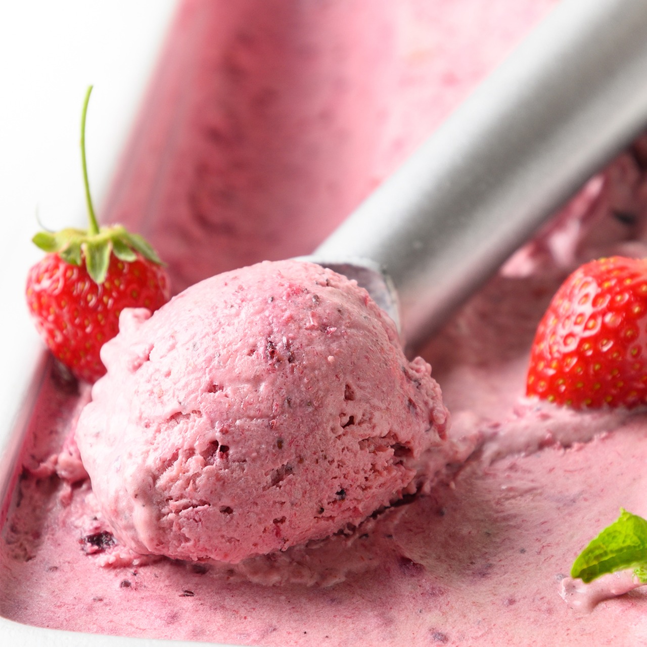 糖度の高い完熟したとちおとめ果肉を使ったアイスクリームです。完熟したとちおとめは、他のとちおとめと比べても群を抜いて高い糖度のため、使用する砂糖を大きく減らせます。